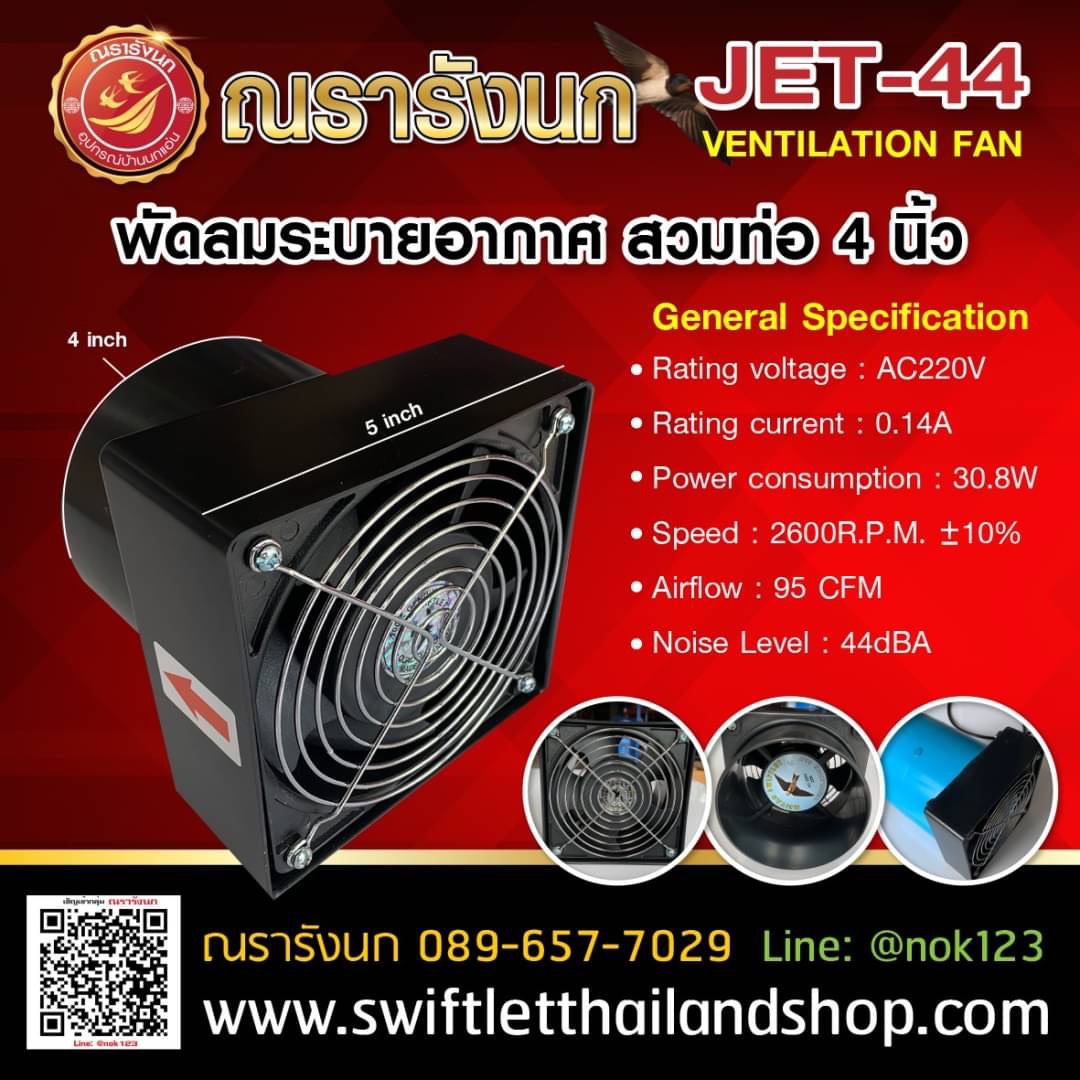 อีเมลล์: swiftletthailandshop@gmail.comQ4-Meiyan Ventilation Fan with Casing 4" Ball bearings Fan พัดลมดูดอากาศ ระบบไฟฟ้า สามารถสวมท่อระบายอากาศในบ้านนก ขนาด 4 นิ้ว ได้พอดี สั่งทำงานโดยใช้ไฟบ้านได้เลย มีโครงเหล็กครอบ สามารถต่อพ่วงกับ Timer หรือเครื่องคุมอุณหภูมิและความชื้นอัตโนมัติได้ ระบายได้ทั้งความร้อนและความชื้นที่มากเกินไป ทำให้บ้านนกน่าอยู่ นกชอบมาก