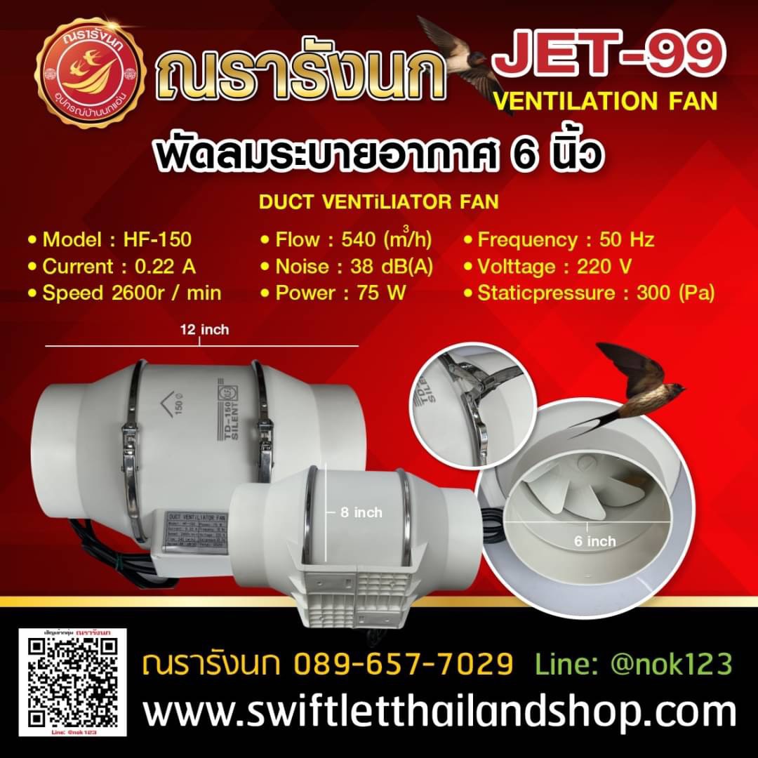 JET-99 พัดลมระบายอากาศพลังสูง ขนาด 6 นิ้ว