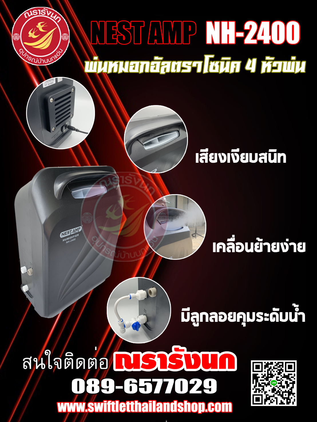 N4-NEST AMP ULTRASONIC HUMIDIFIER NH2400 เครื่องพ่นหมอกไร้เสียงจาก NEST AMP ขับหมอกด้วย MIST MAKER ขนาด 4 หัว มีตัวกรองน้ำในตัว พัดลมขับหมอกคุณภาพสูง วัสดุชั้นดี รูปทรงสวยงามทนนทาน น้ำหนักเบา เคลื่อนย้ายง่าย
