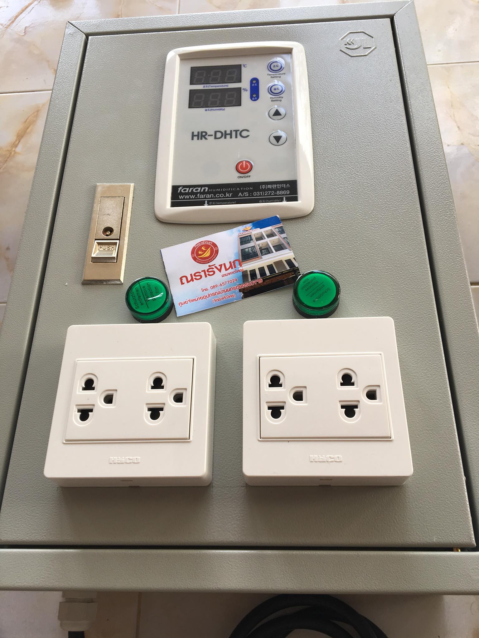 F5R-FARAN HUMIDITY OR TEMPERATURE CONTROL IN BOX ชุดควบคุมอุณภูมิและความชื้นอัตโนมัติ ยี่ห้อ FARAN สัญชาติเกาหลี สายเซนเซอร์ 25ม.(เพิ่มได้) ประกอบลงกล่องพร้อมใช้ได้ทันที ครบชุดที่สุดทั้ง ทามเมอร์ แมคเนติก ปลั๊กเต้าเสียบ ให้ค่าแมนยำเที่ยงตรง คุ้มที่สุด