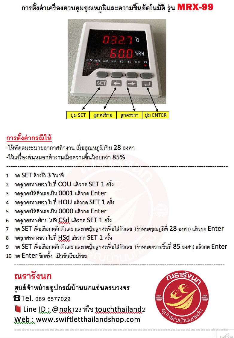 MRX-99 PLUS ประกอบลงตู้พร้อมใช้ สุดยอดเครื่องควบคุมอุณหภูมิความชื้นอัตโนมัติ หัวเซฯเซอร์แสตนเลส ทนทาน ความยาวสาย 25 ม. ให้ค่าเสถียร ไม่แปรปรวน เพื่อสั่งการกับเครื่องพ่นหมอกหรือเครื่องทำความชื้น และพัดมระบายอากาศทุกแบบทุกประเภท+Timer ในตัว