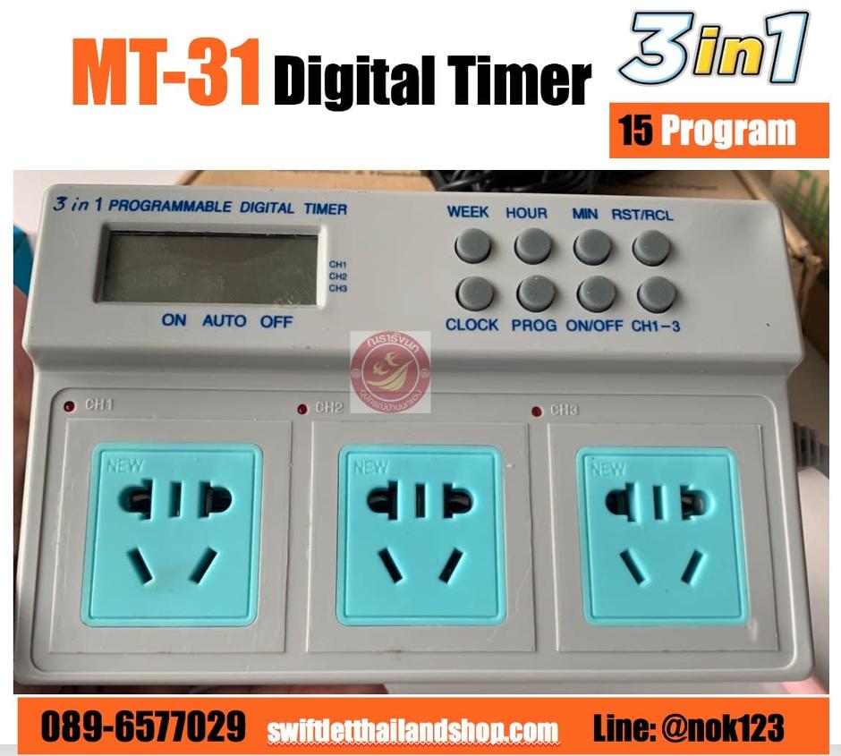 MT-31 Maxi Tronic Digital Timer 3in1 ทามเมอร์ตั้งเวลาแบบดิจิตอล  3 ชุดในเครื่องเียว สามารถตั้งเวลาแยกอิสระต่อกัน กำหนดเวลาเปิด-ปิด ได้ถึง 15 โปรแกรม มีระบบไฟสำรองในตัว คุ้มค่าแน่นอน