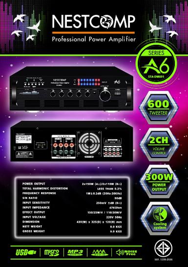 อีเมลล์: swiftletthailandshop@gmail.comB8G-Nestpro Amplifier MXBS16-4ch เครื่องเสียงรุ่นกลางคุณภาพสูง จาก NESTPRO รองรับ USB และ SD Card กำลังขับลำโพง TWEETER 400 ตัว แยกอิสระ 4 Channel ปรับเสียงแยกได้อิสระ 2ช่อง มีพัดลมระบายอากาศระบายความร้อนในตัว