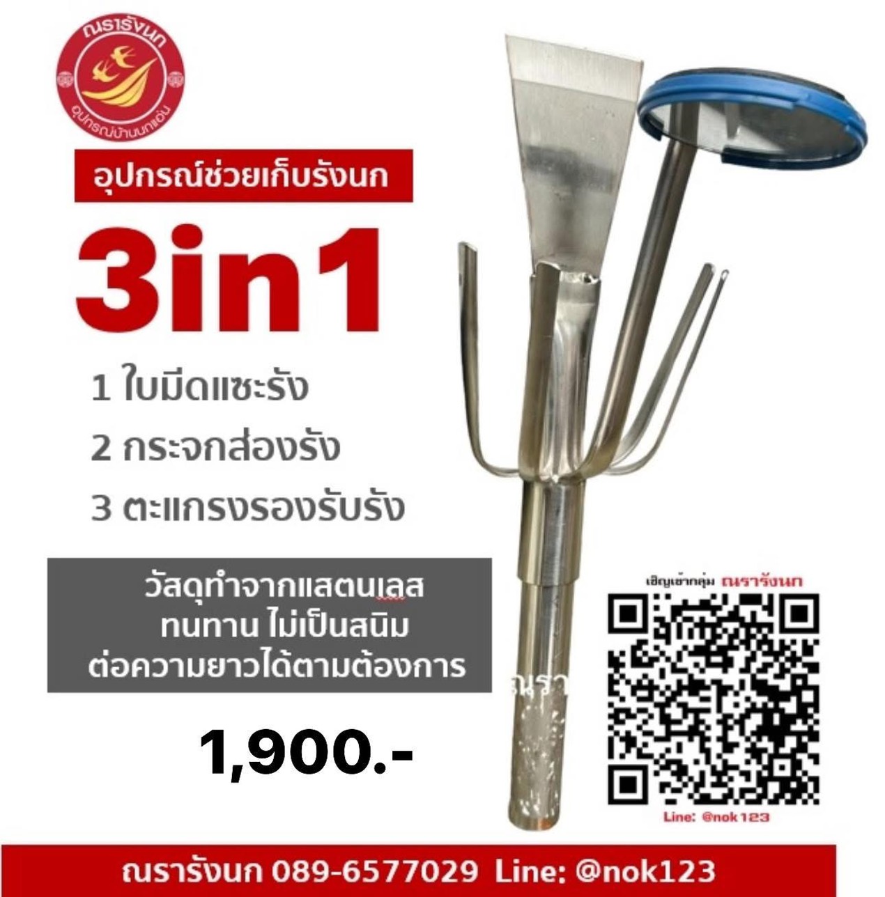 SB1-ชุดเก็บรังนก 3 in 1 ประกอบด้วยใบมีดแซะรัง ตะแกรงรองรัง และกระจกเช็ครัง ทั้งชุดทำจากแสตนเลสคุณภาพดี ใช้งานง่ายมาก ช่วยให้การเก็บรังนกของคุณง่าย ประหยัดเวลา ทนทาน คุ้มค้าสุดๆๆๆๆ