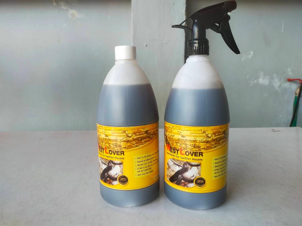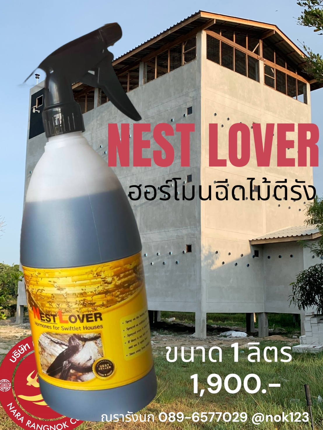NEST LOVER ฮอร์โมนฉีดไม้ตีรังยอดนิยม ดึงนกนอนทำรังรวดเร็ว 2 ลิตร มาในขวดแรงฉีดสูง การใช้งานโดยฉีดพ่นบนไม้ตีรัง ไม่ต้องผสมน้ำ จะช่วยดึงดูดนกให้นอนทำรังได้อย่างรวดเร็ว